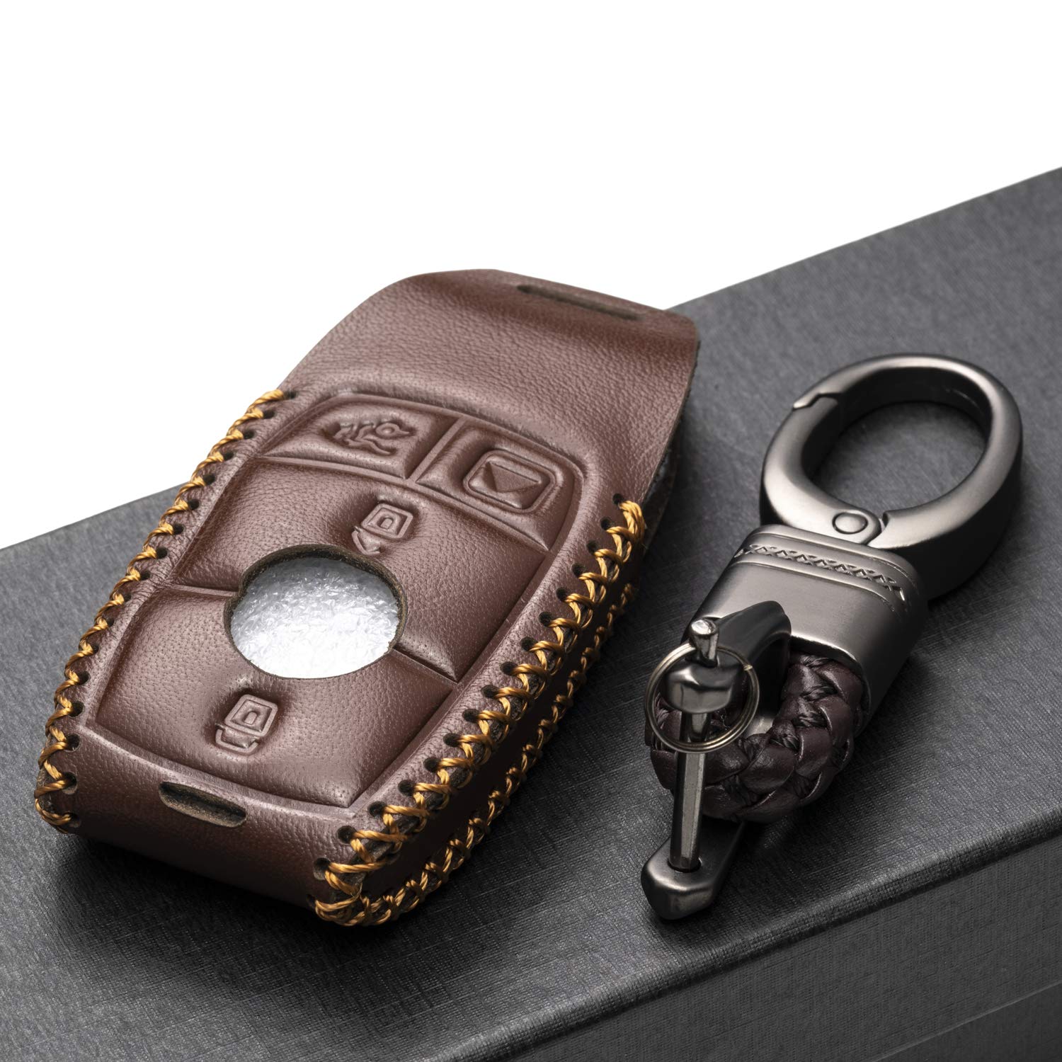 View Genuine Mercedes Benz Key Chain Background. Has been added to your cart. Genuine leather car fob smart key case cover holder key chain for mercedes benz.